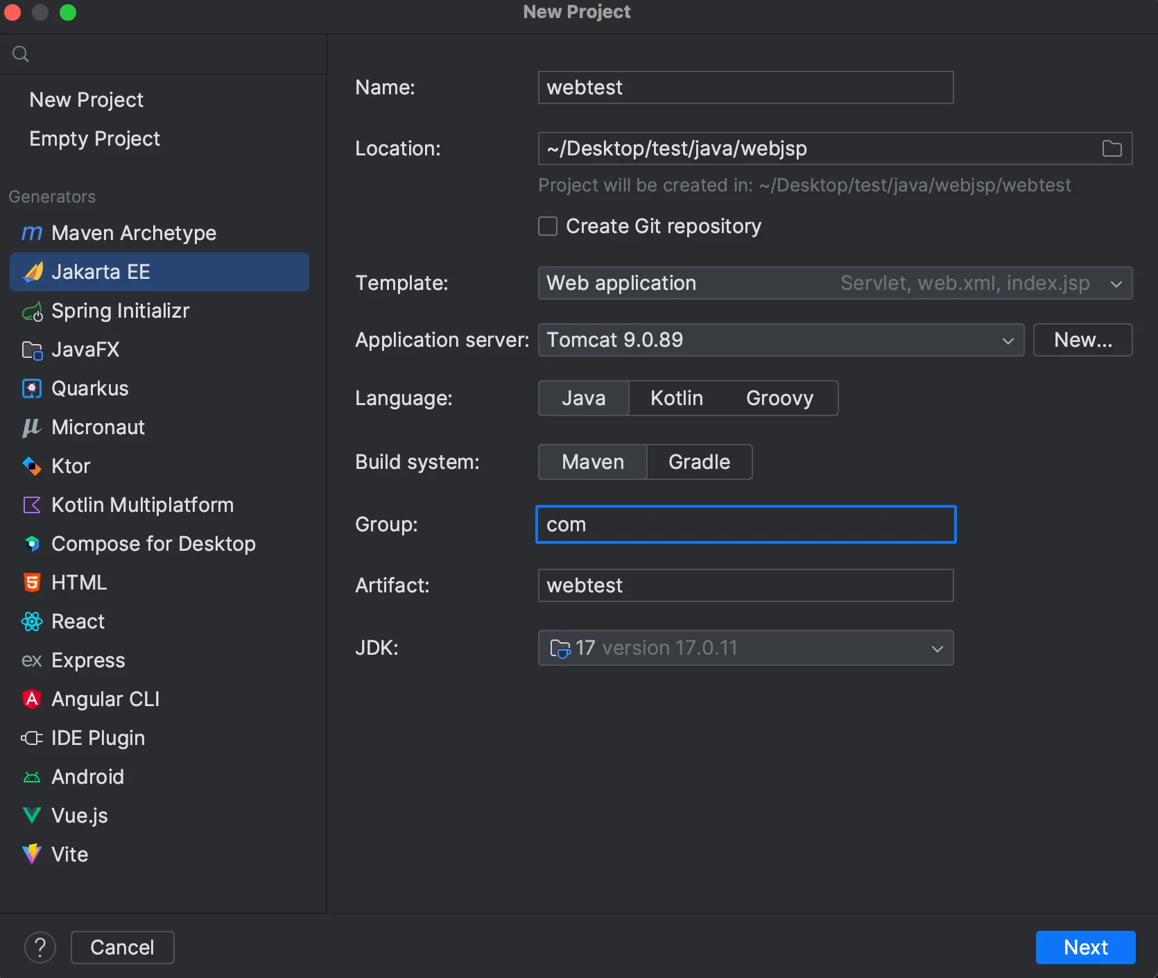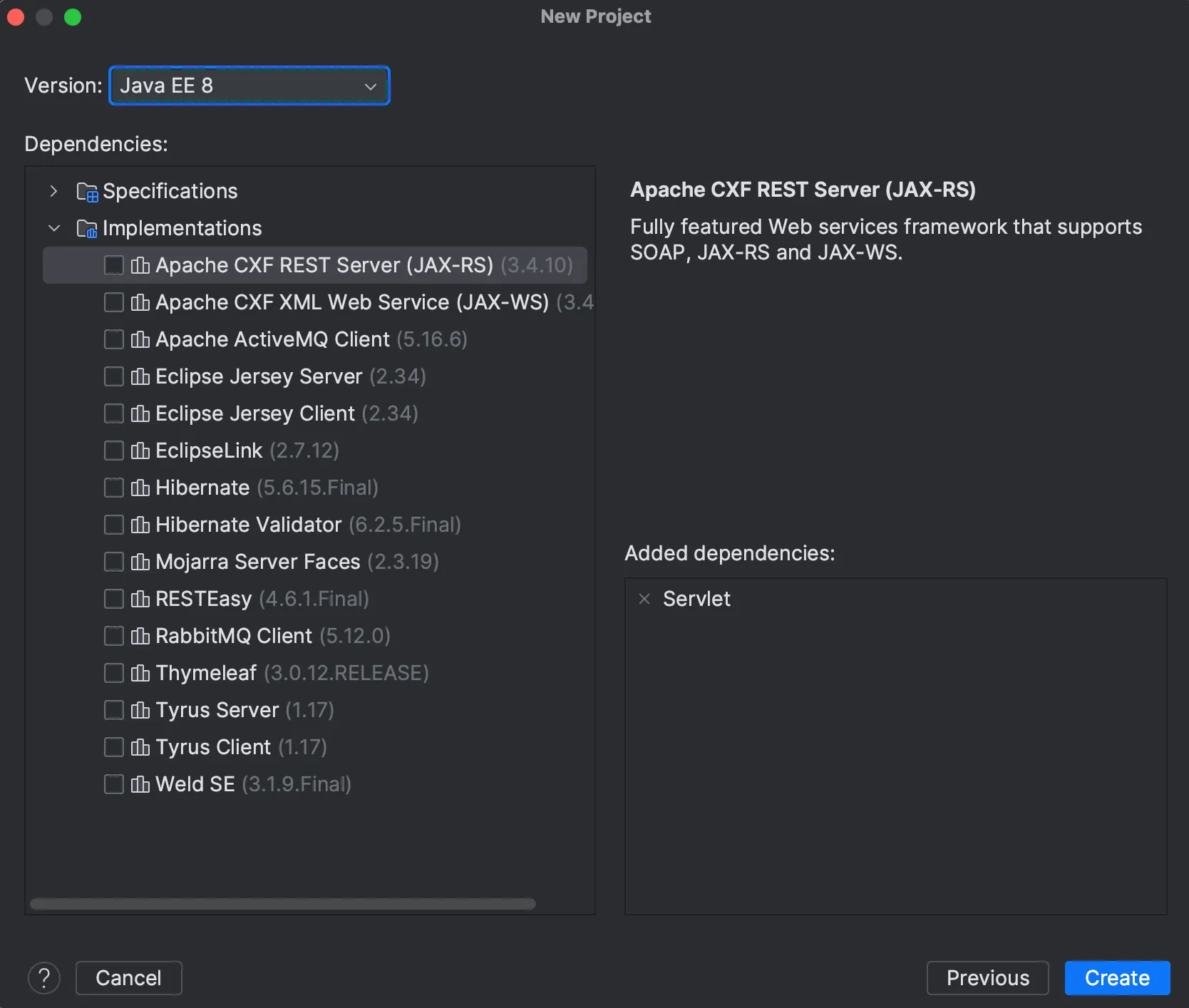 Version을 Java EE 8 로 설정 후 “Create” 버튼 클릭