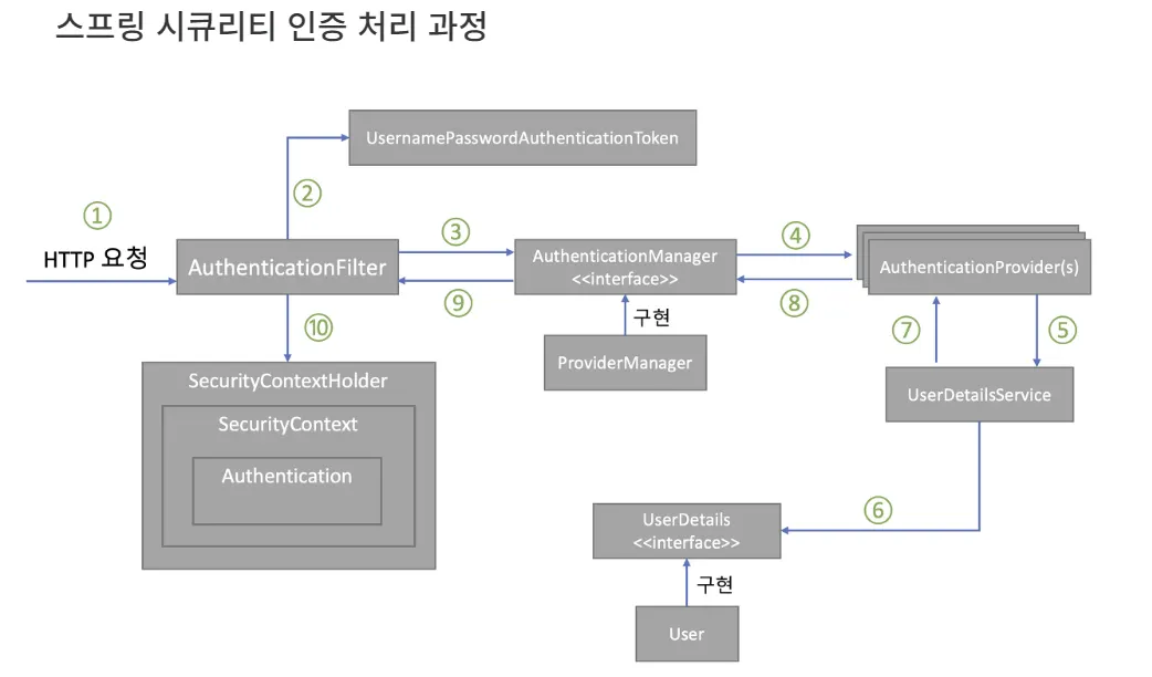 스프링 시큐리티 인증 처리 과정 구성도