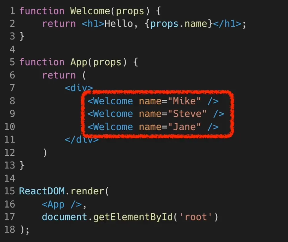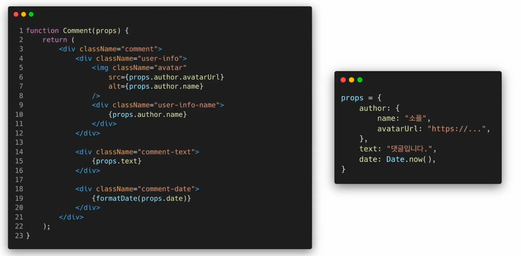 리액트에서는 Component 안에 또 다른 Component를 쓸 수 있다.