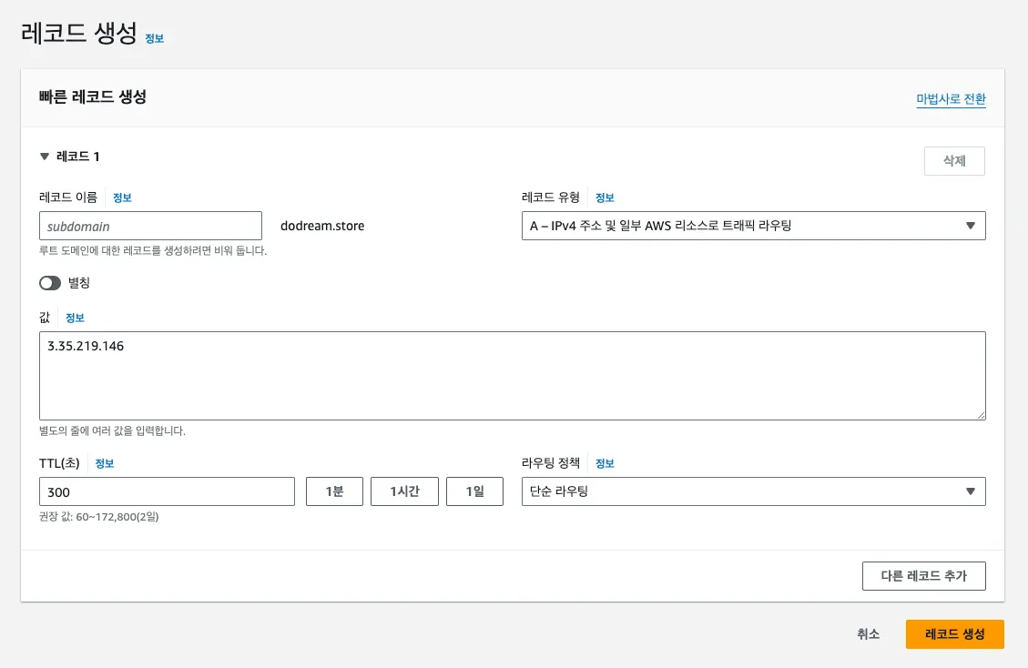 ubuntu@ip-172-31-2-73:~$ sudo certbot --nginx -d dodream.store -d www.dodream.store