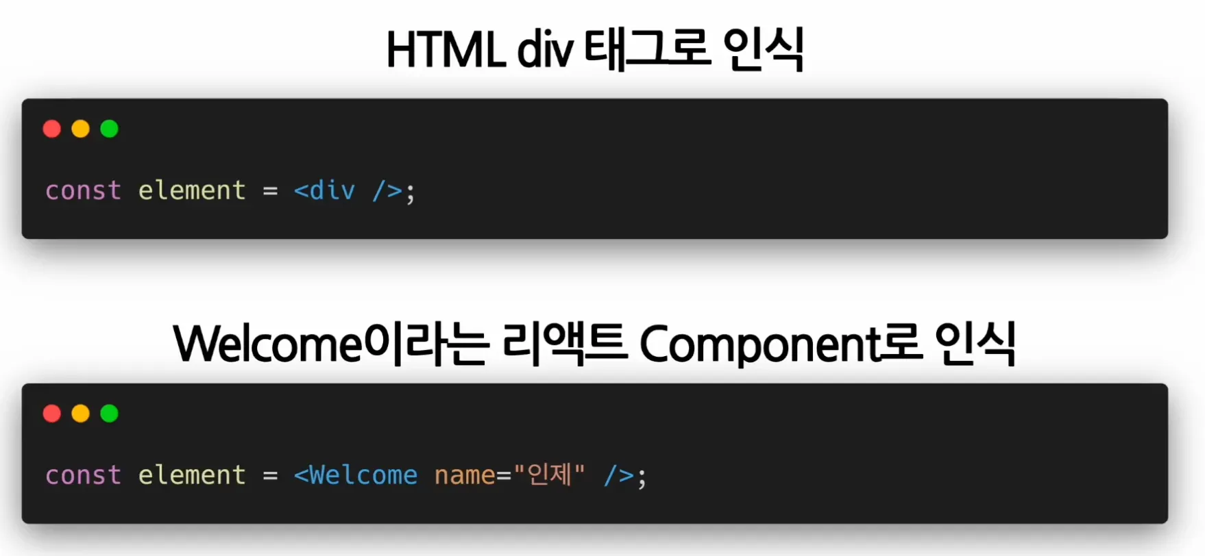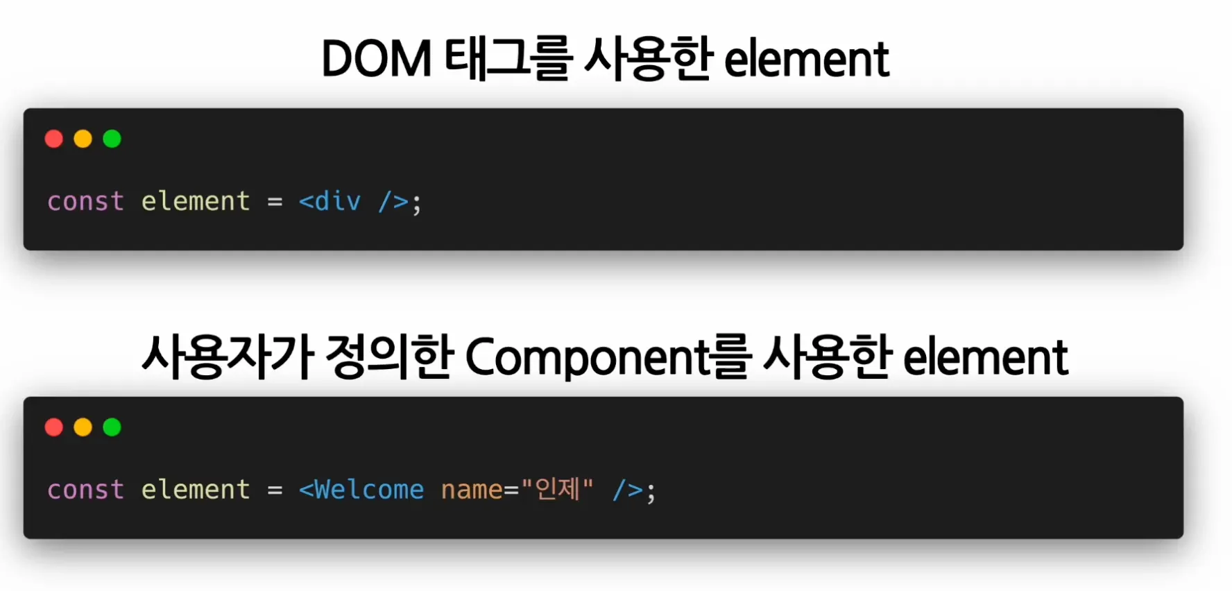 컴포넌트로부터 엘리먼트를 만들어야 렌더링이 가능