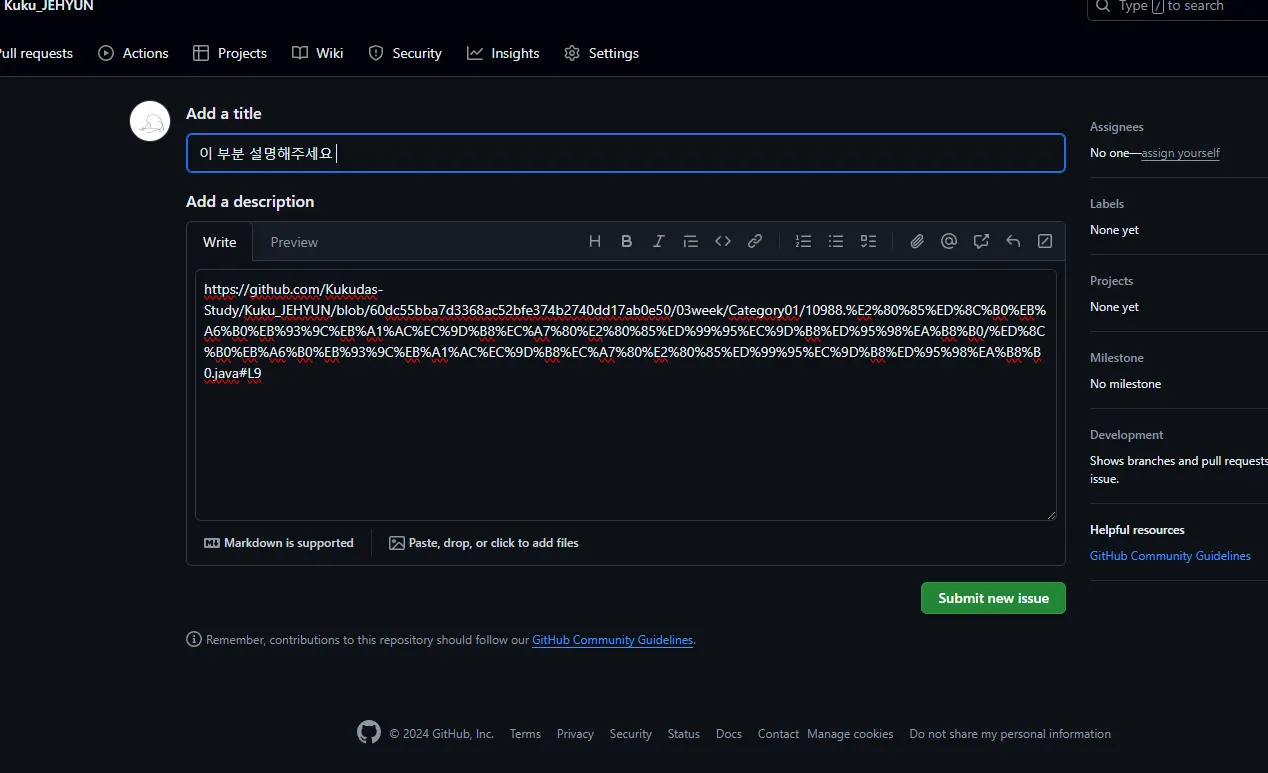 모든 문제에 다 올린다기 보다 자기가 이해되지 않는 부분에 한해서 이슈를 작성