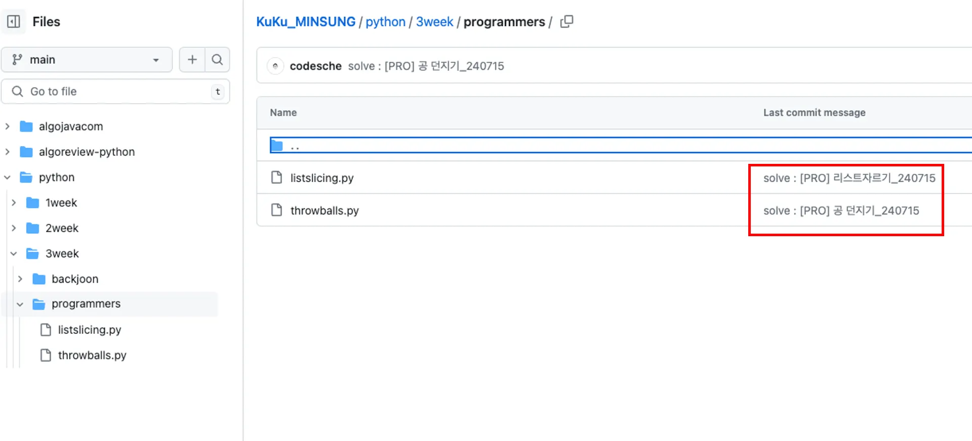 풀었을 경우 -> solve : [플랫폼이름] {문제이름}_{날짜}