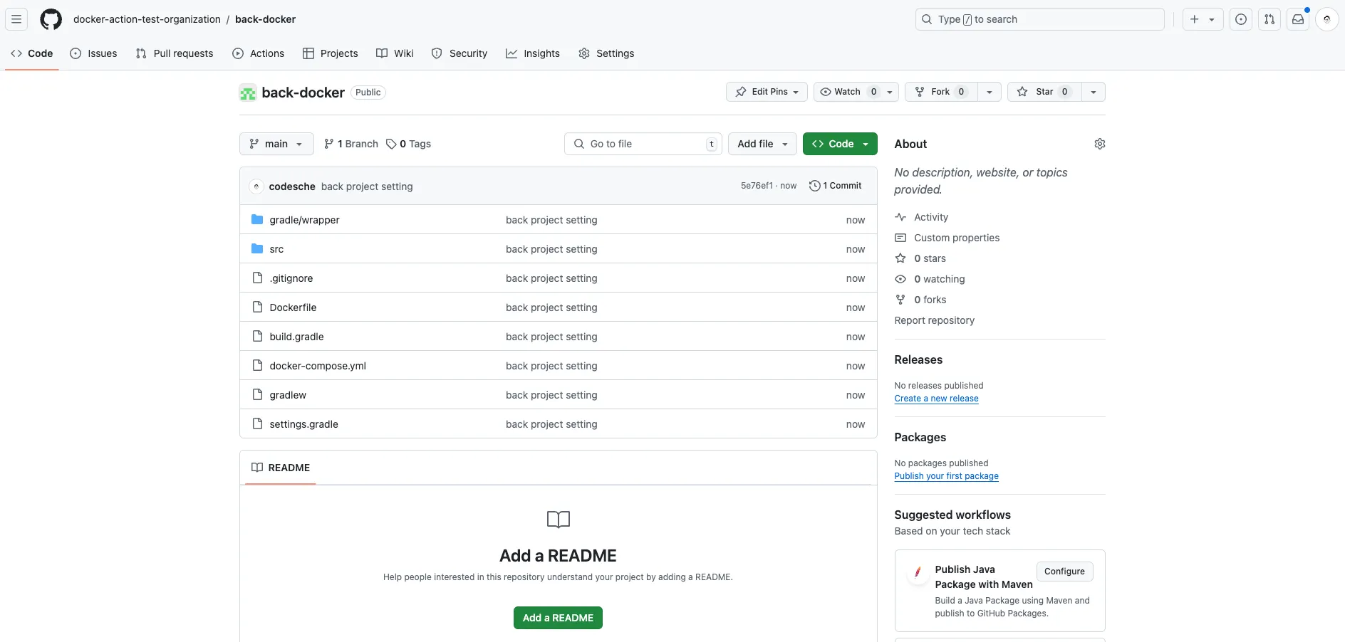 Front와 동일하게 Action 들어가서 back-workflow.yml 파일 작성