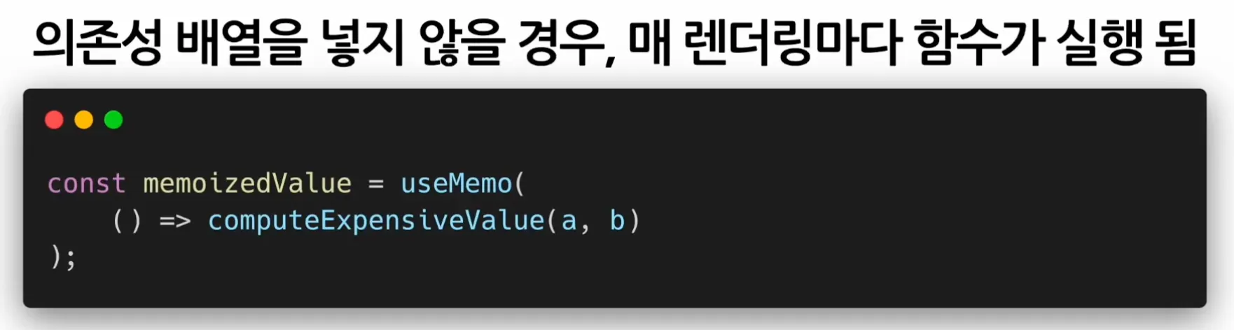 의존성 배열을 넣지 않을 경우, 매 렌더링마다 함수가 실행됨