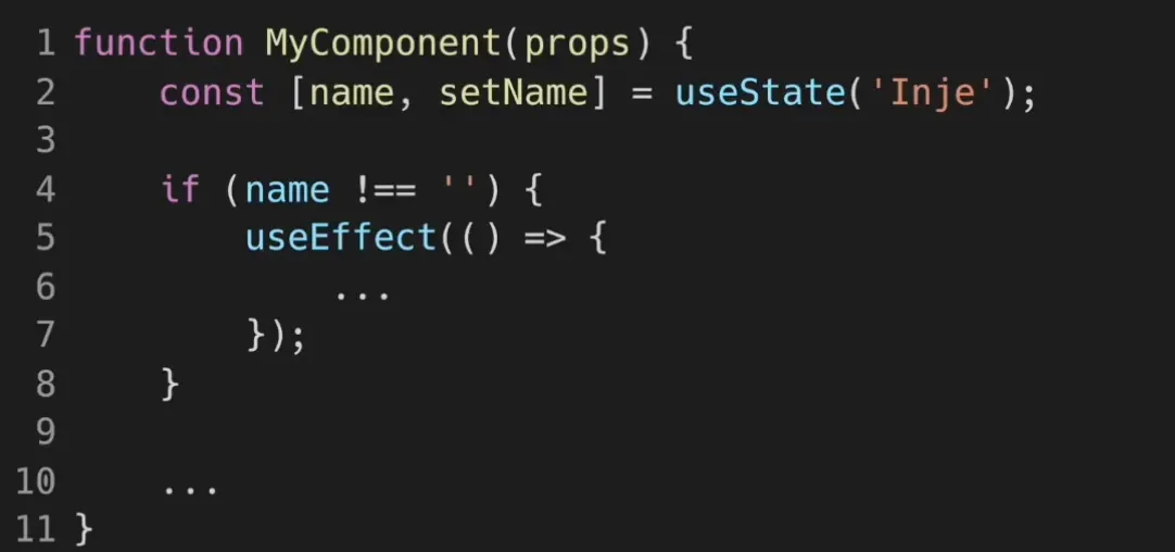 반복문, 조건문 안에서 hook을 호출하면 안 된다!