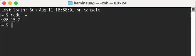 명령 프롬프트로 node.js 설치 확인