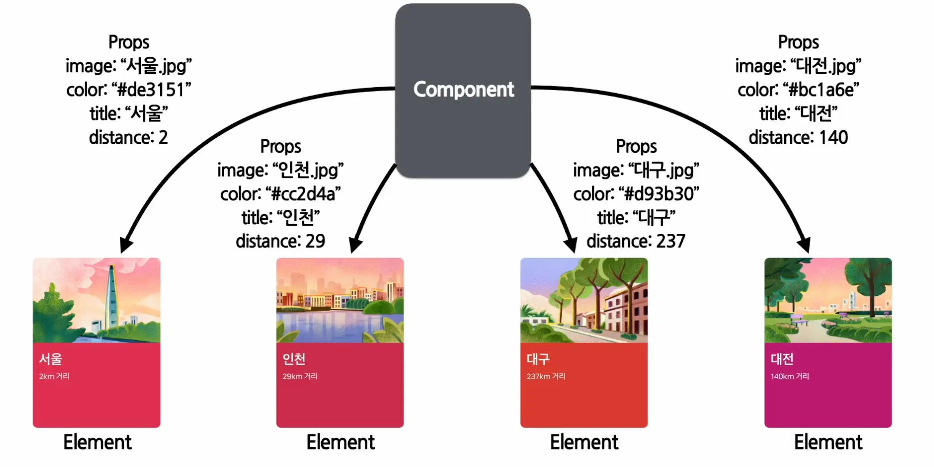 자바스크립트 객체에는 컴포넌트에 전달할 다양한 정보를 담고 있다.