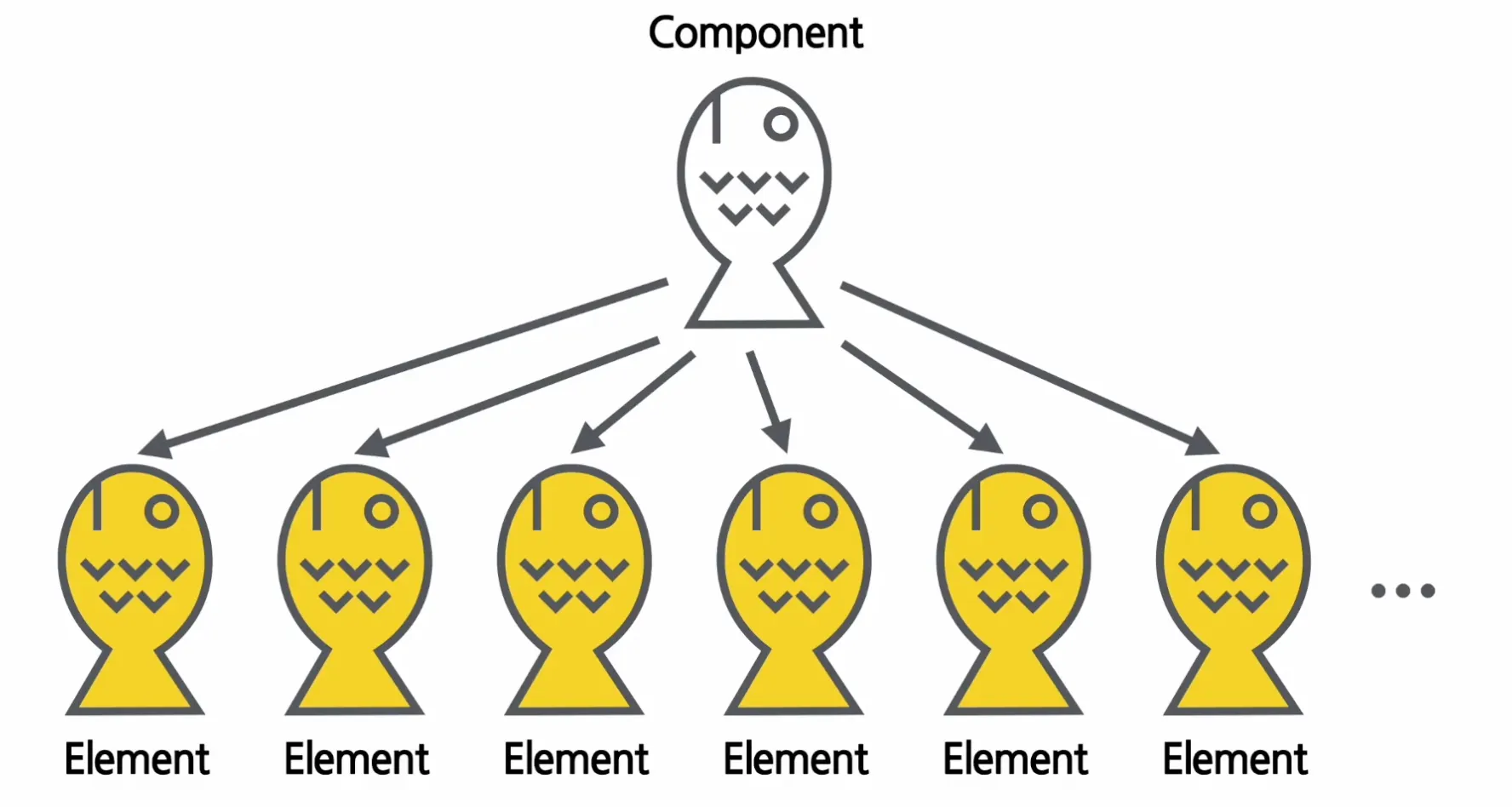 모든 페이지가 컴포넌트로 구성되어 있고 하나의 컴포넌트는 또 다른 여러 개의 컴포넌트로 구성될 수 있다.
