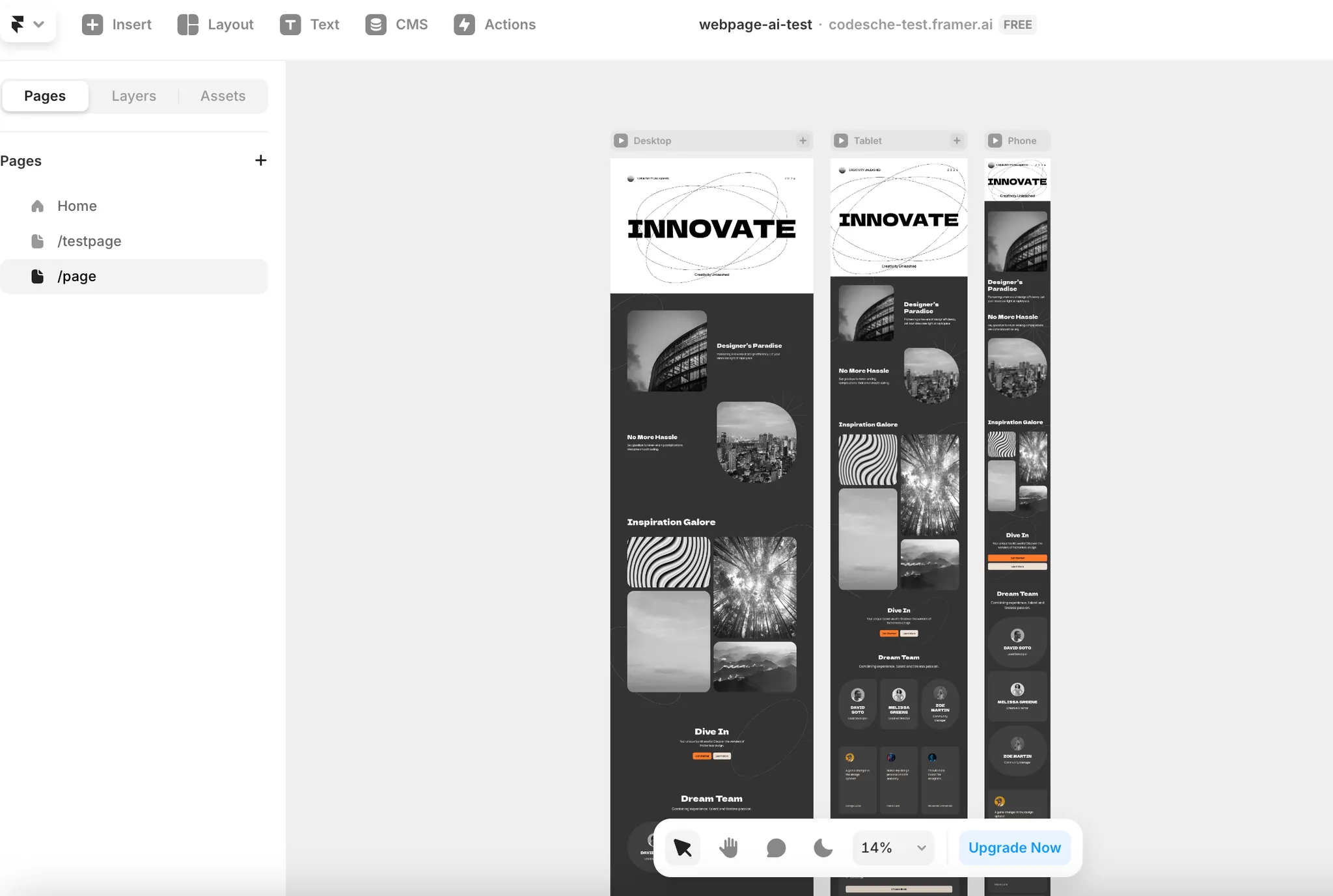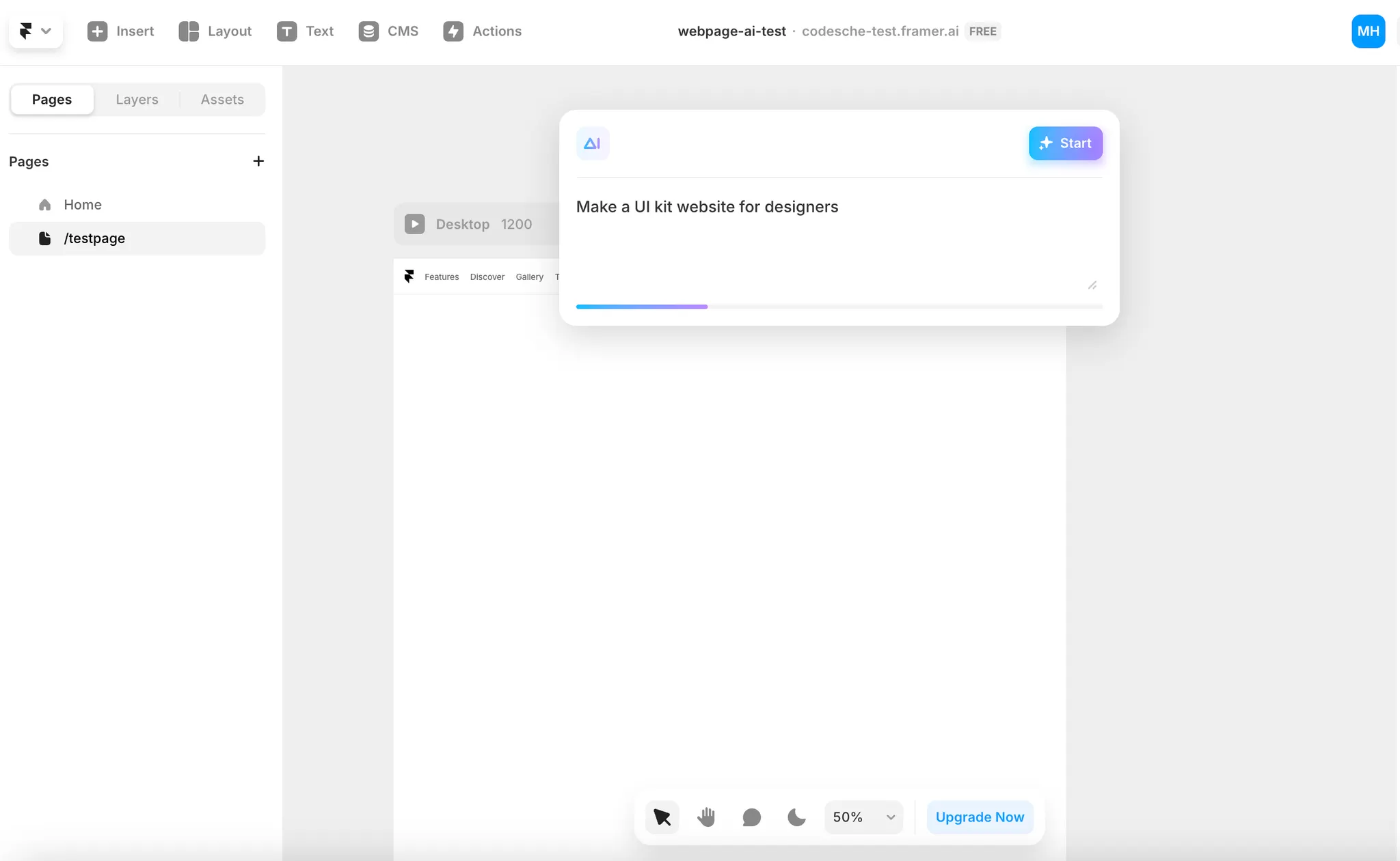 framer는 figma과 같은 디자인 툴인데 AI를 활용하여 페이지를 생성해주는 기능이 있다.