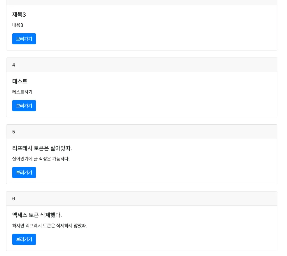 액세스 토큰은 유효하지 않지만 리프레시 토큰이 있으므로 /token API를 호출해 새 액세스 토큰을 발급받아 인증을 다시 요청해 인증 필터를 통과하여 글이 잘 등록된다.