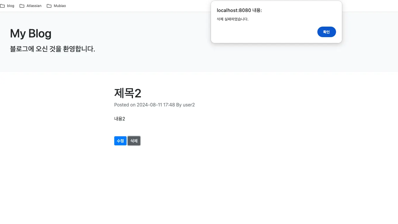 내가 작성하지 않은 글을 수정하거나 삭제하면 어떻게 되는지 확인