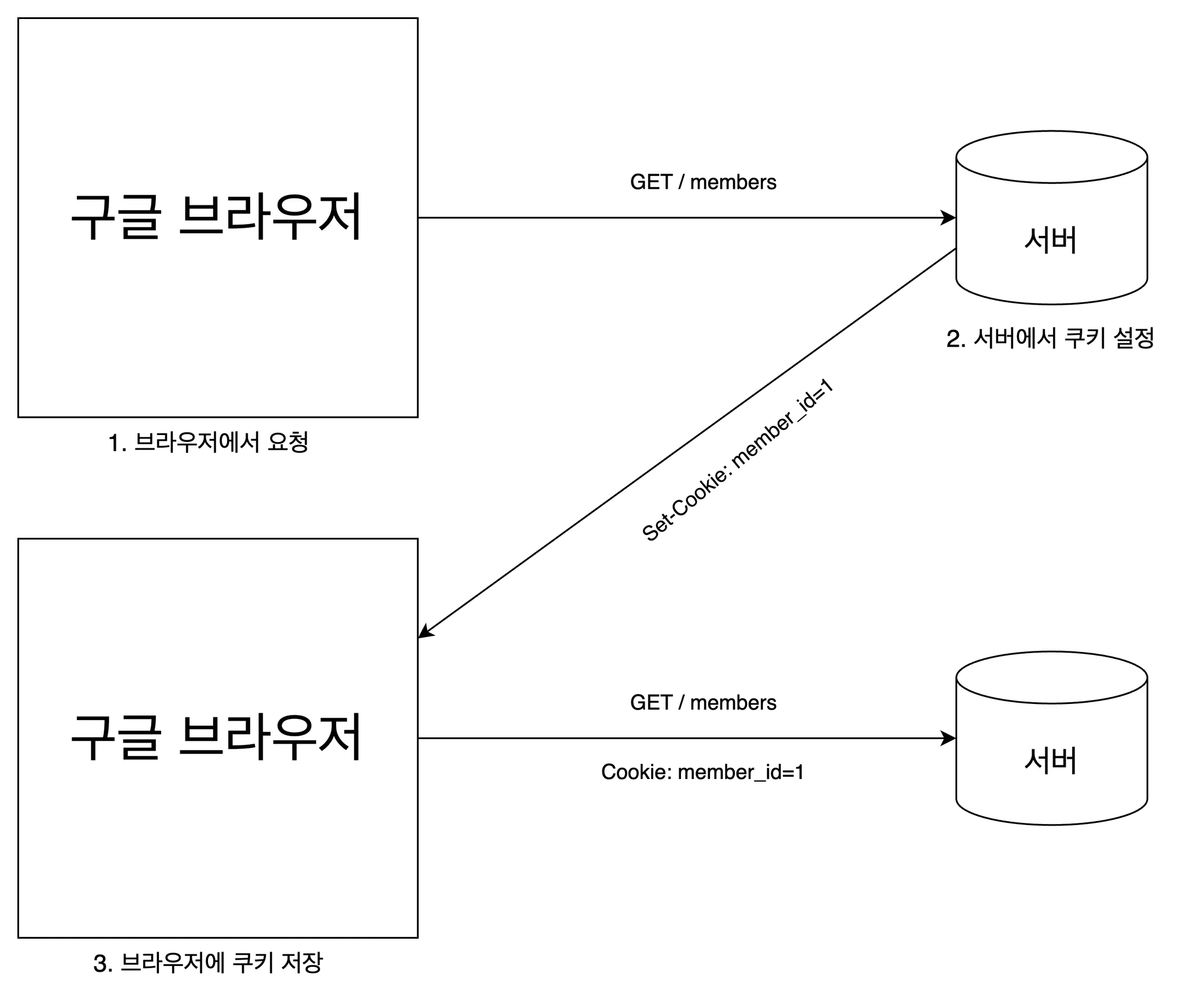 클라이언트가 정보를 요청하면 서버에서 정보를 값으로 넣은 쿠키를 생성해서 요청한 정보, 즉 HTTP 헤더와 함께 돌려보낸다. 그러면 클라이언트는 로컬 즉, 브라우저에 쿠키를 저장한다.