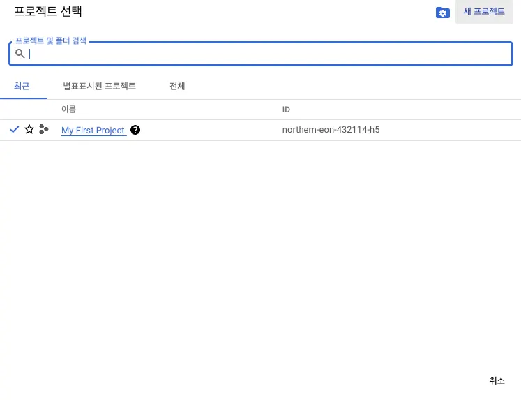 구글 클라우드 콘솔에 접속하여 구글 클라우드 사용 동의 절차를 진행한 이후에 새 프로젝트 생성하기